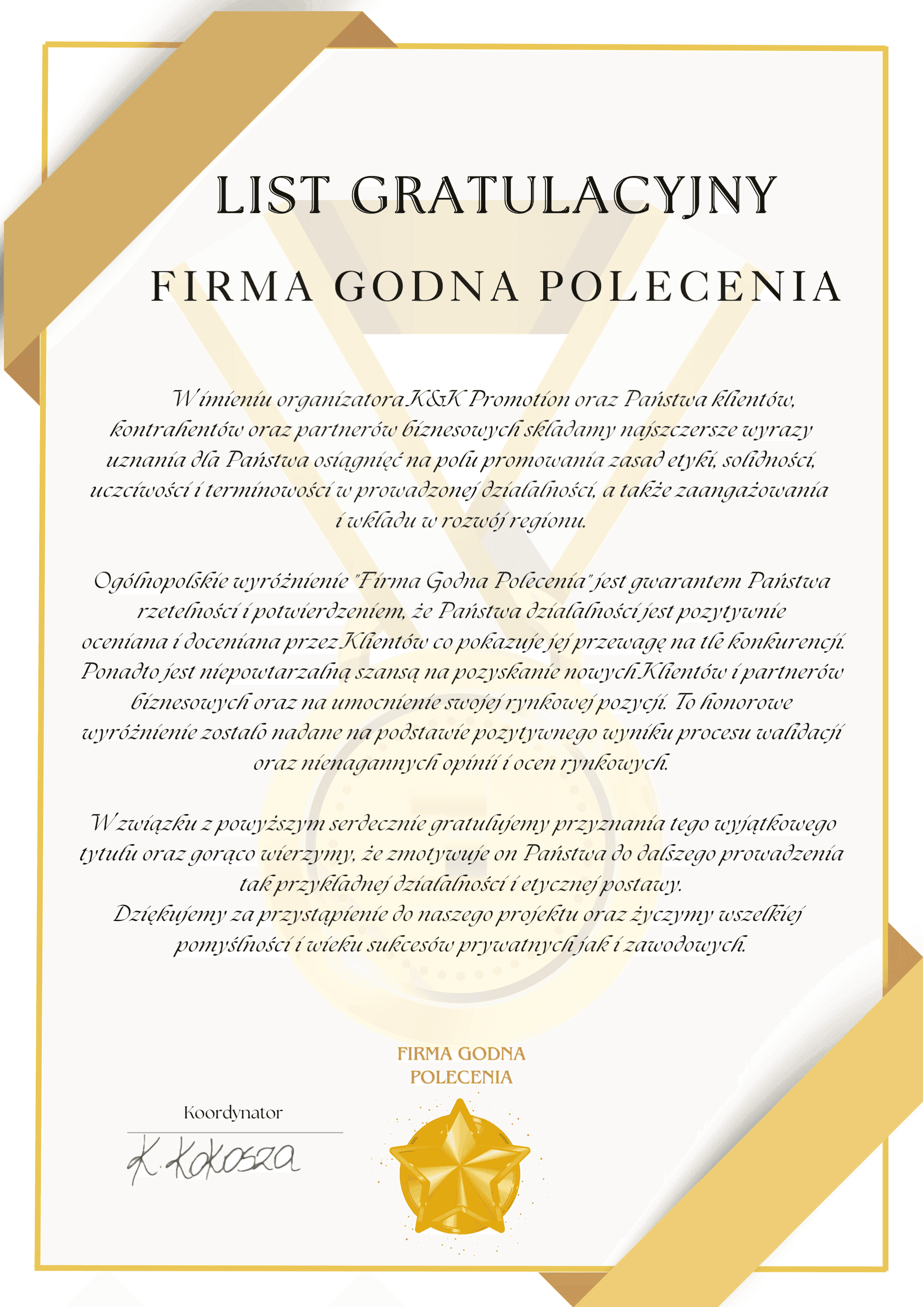 Jesteśmy dumni z wyróżnień i certyfikatów, które otrzymaliśmy dzięki zaufaniu naszych klientów i wysokiej jakości świadczonych usług. Poniżej znajdziesz szczegóły dotyczące otrzymanych przez nas rekomendacji.